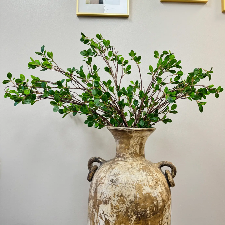Get artificial greenery and leaves, like this beautiful green faux Aglaia Odorata leaf spray. Add color and texture to your home or office decorations. Green leaves with lifelike brown twigs. 42" Tall.