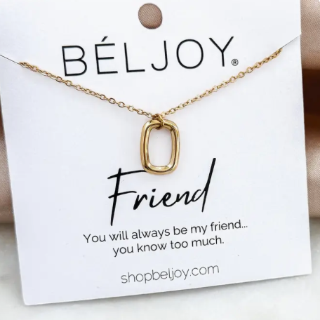 A Friend Gift Necklace — a delicate 16" chain with 2" extender, crafted from stainless steel plated in 18K gold, a timeless symbol of friendship and grace.