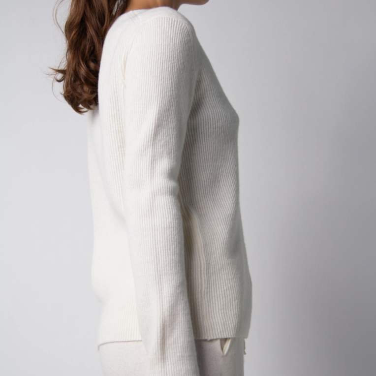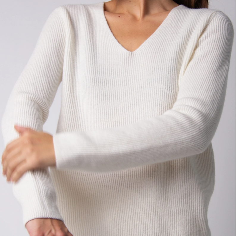 In the world of fashion, certain pieces transcend the boundaries of time and trend, capturing the essence of timeless elegance and comfort. This Cashmere Mix V-Neck Ribbed Sweater is one such masterpiece. From the moment you lay eyes on it, you'll understand that this sweater is not merely an article of clothing but a work of art that embodies luxury, style, and sophistication. Despite its luxurious materials and intricate ribbed texture, this ribbed sweater is surprisingly low maintenance. To preserve its shape and softness, it's recommended to lay it flat to dry. With proper care, this sweater will continue to look and feel like new, making it a lasting investment in your wardrobe.