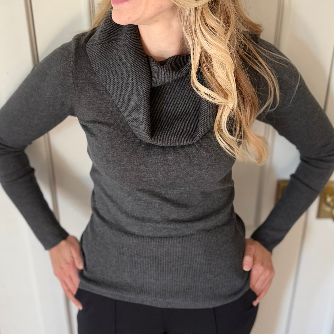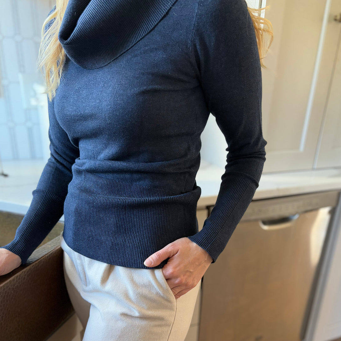 Elegant, timeless, and effortlessly versatile, this fitted Knit Sweater is a wardrobe essential designed for the modern woman. Available in dark blue or dark grey, this softly textured knit offers a flattering, fitted silhouette that layers beautifully under your favorite blazer for work, special events, or the holiday season.