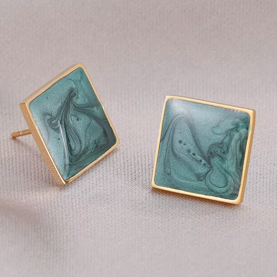 Modern artistry meets timeless elegance in these square stud earrings. Measuring approximately 0.3 inches (7.5mm), each pair is crafted from durable stainless steel and plated with 14K gold for a refined finish. The unique drip glaze detailing adds a touch of organic texture and luminous depth, available in your choice of teal green or golden yellow.