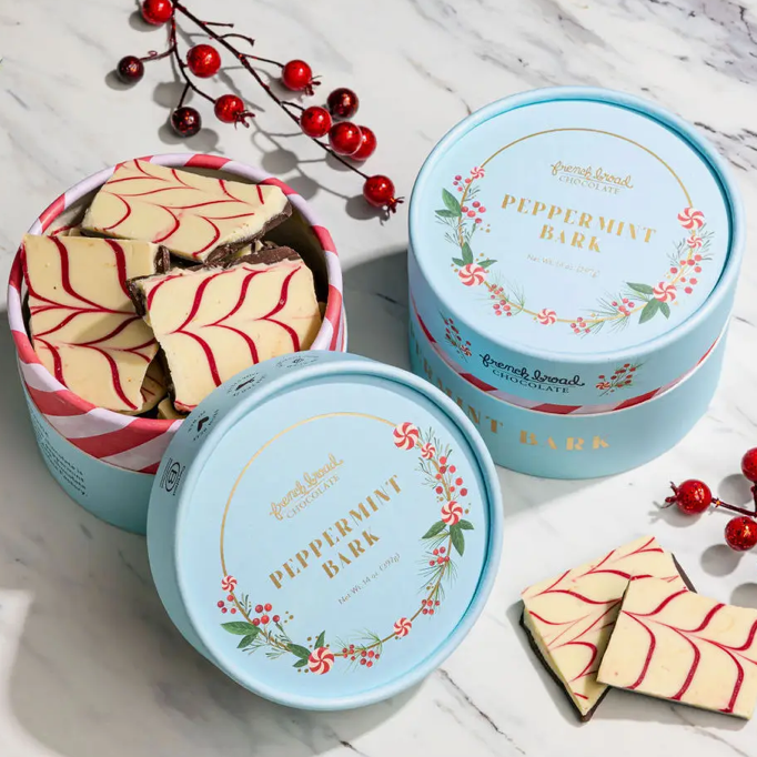 Delicious, fair trade peppermint bark (14 oz), beautifully packaged and irresistibly indulgent