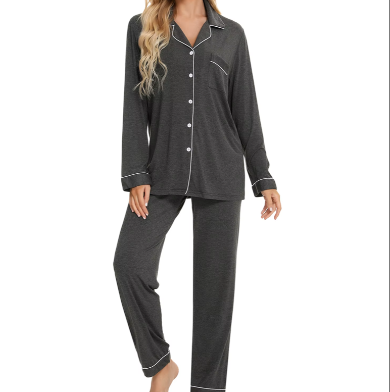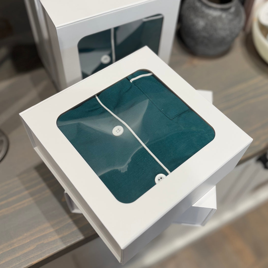 Indulge in evening elegance with these luxury pajamas, crafted for those who appreciate timeless refinement and comfort. The design of these pajamas is classic yet elevated with delicate white piping that creates a crisp contrast to every seam, lapel, and cuff. Weather lounging at home, or turning in for the night, these pajamas impart luxury and ease. Material: 95% viscose, 5% spandex. Each Set comes packaged beautifully in a while magnetic gift box with a clear display window.