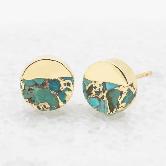 The New Horizon Turquoise Studs feature natural turquoise inlaid with radiant 14k gold plating, creating a striking contrast of earth and elegance. Each pair is a one-of-a-kind reflection of nature’s beauty, making them a timeless addition to any collection (and a stunning gift!).