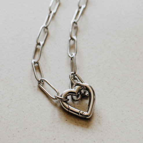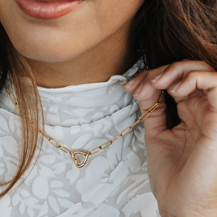 Ethically made in Asia using a 16" chain with 2" extender for a total length of 18", Lobster clasp, Heart charm measures .5"H x .5"W, Waterproof 18K gold-plated stainless steel necklace.