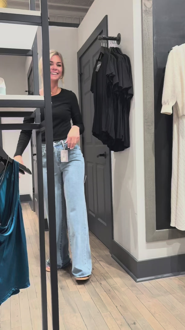 A Mid-rise denim with a slouchy fit, and wide leg. Real-denim feel--Authentic denim made from 100% recycled cotton. Worn long and baggy or cuffed at the hem for a vintage-inspired look. Cuff is not stitched. Can be worn full length at 31.5" inseam. Factory cuff is set at 28" inseam.