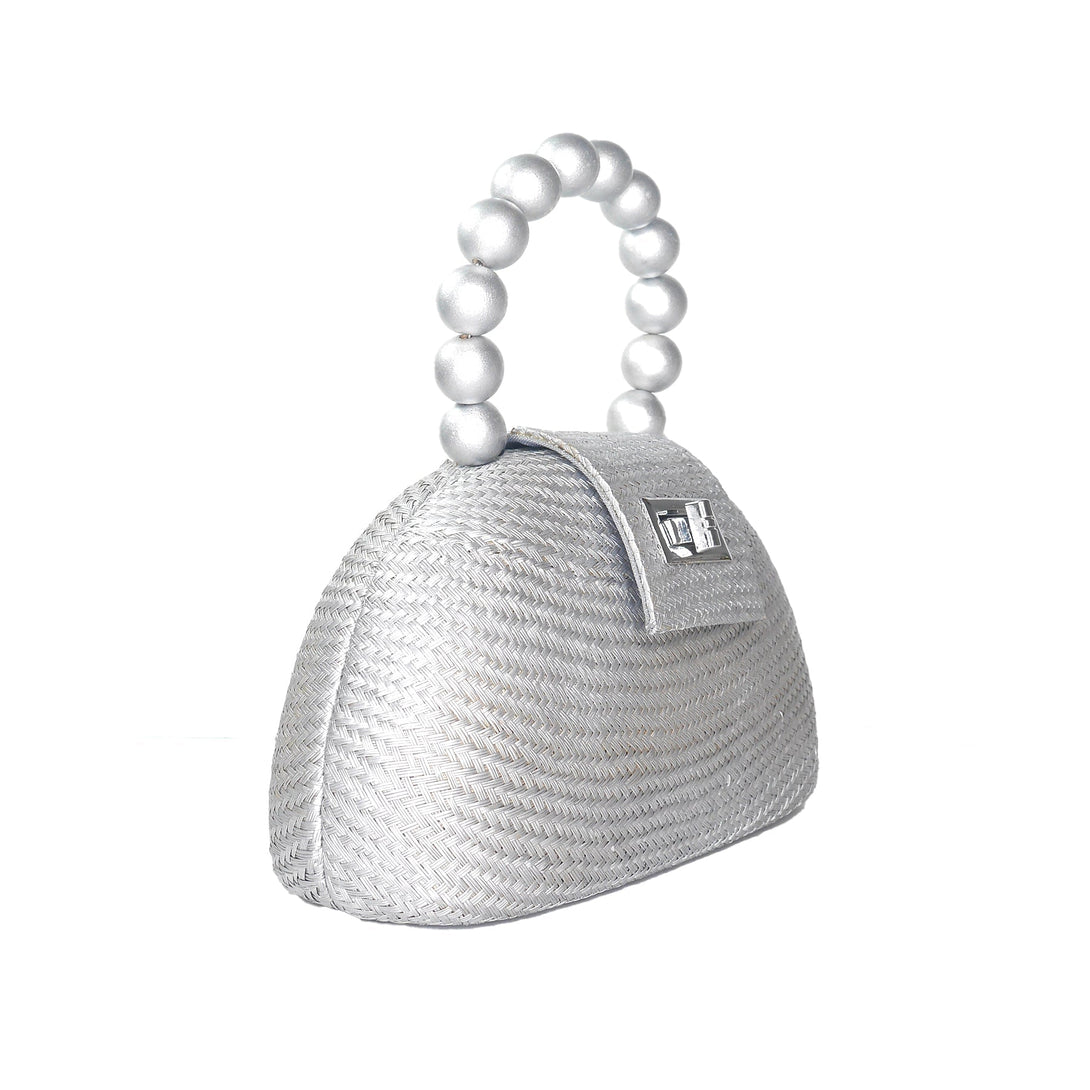 Key features: - Handcrafted from lustrous silver buntal straw - Unique half-moon shape, evoking images of the setting sun - Statement wooden bead handle in complementary silver finish - Versatile design suitable for both day and evening occasions - Detachable crossbody strap included for a hand-free option The Orla Bag showcases the intricate beauty of buntal straw weaving, a traditional Filipino craft elevated to new heights with its stunning silver hue. The meticulous weave adds depth and texture, creating a bag that's as much a piece of art as it is a functional accessory. Size: 9" x 9" x 3"