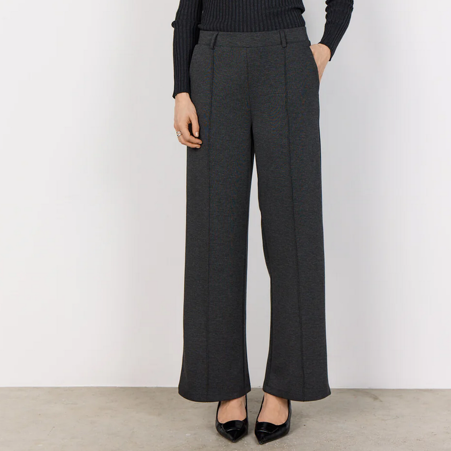 The Vita Trouser pants are crafted from 48% Modal, 48% Polyester, and 4% Elastane. These full-length pants feature a wide-leg design with subtle seam details down the front, functional pockets and elastic waist band with belt loops. Pair them with a fitted top or casual blouse for a stylish look. 30" Inseam.